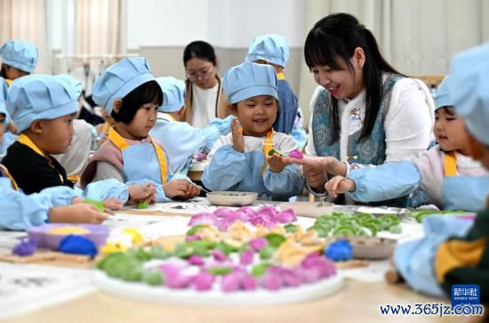 12月19日,在河北省石家庄市新华区第一幼儿园,老诚指引小一又友们包饺子。